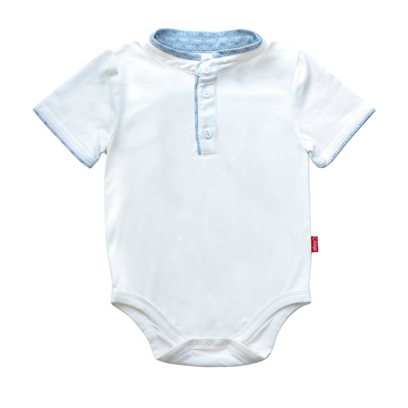 Aus 95 % Baumwolle und 5 % Elasthan – angenehm auf der Haut und ideal für aktive Kinder. Mit Hemdkragen, Knopfverschluss vorne und praktischem Druckknopfverschluss im Schritt.
