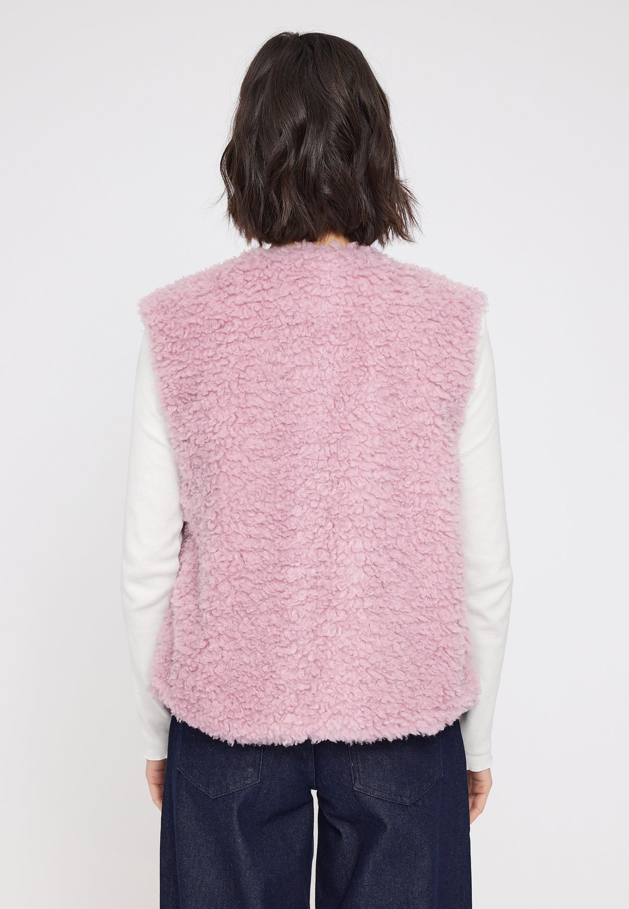 Die Faux-Fur Vest verbindet luxuriöse Optik mit praktischer Vielseitigkeit – gefertigt aus 100 % recyceltem Polyester und GRS-zertifiziert. Das besonders weiche Kunstfell überzeugt mit edler Anmutung und angenehmer Haptik, während der ärmellose Schnitt maximale Bewegungsfreiheit schenkt und sich perfekt fürs Layering eignet. Ob über Longsleeve, Hoodie oder unter Strick – diese Weste sorgt für wohlige Wärme, ohne einzuengen. Der dezente Druckknopfverschluss rundet das minimalistische Design funktional ab.