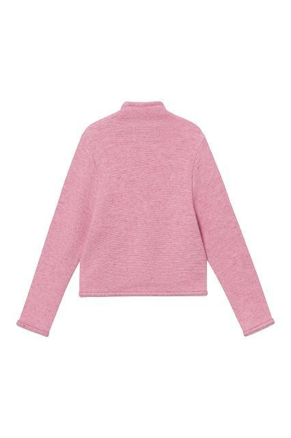 Mit angeschnittenem Stehkragen und kleinen Perlmuttknöpfen ist die Jacke ein stilvoller Begleiter für kleine Entdecker. Perfekt kombinierbar über Dirndl, Rock oder Jeans, ergänzt sie sowohl Trachten- als auch Alltagslooks.